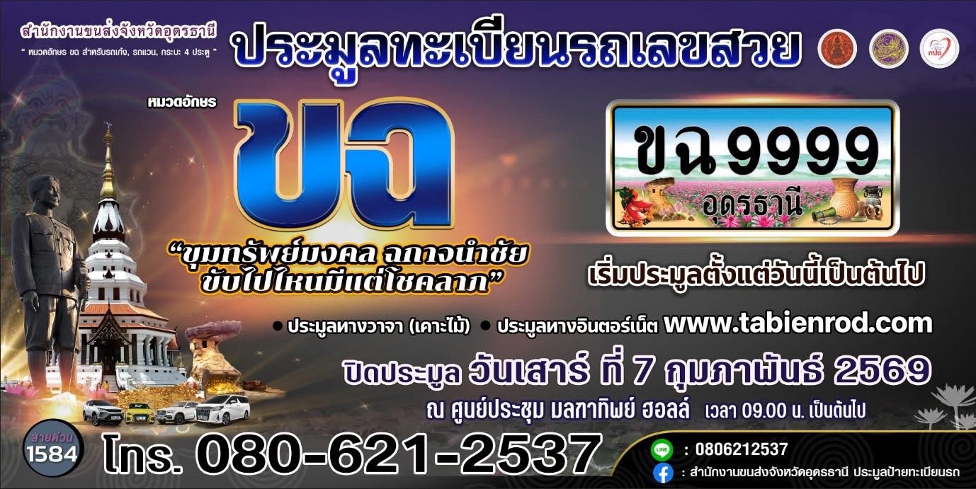 การประมูลทะเบียนรถเลขสวยอุดรธานี หมวด ขฉ 7 ก.พ. 69